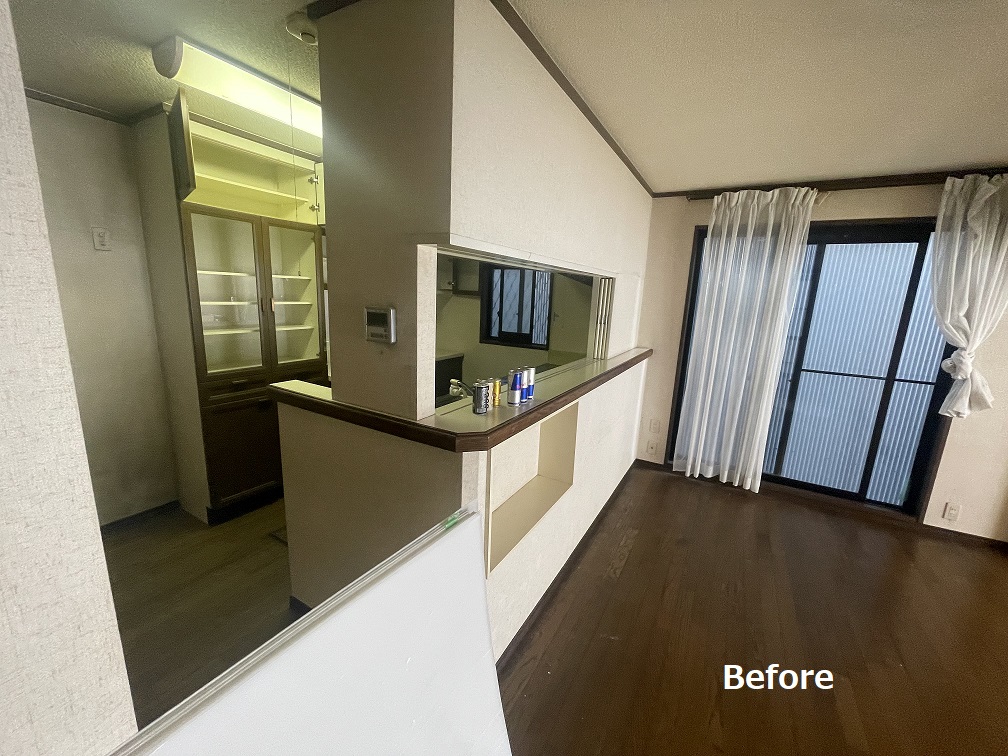 以前はキッチンとリビングの間に垂れ壁があり、閉塞感が強い印象でした。