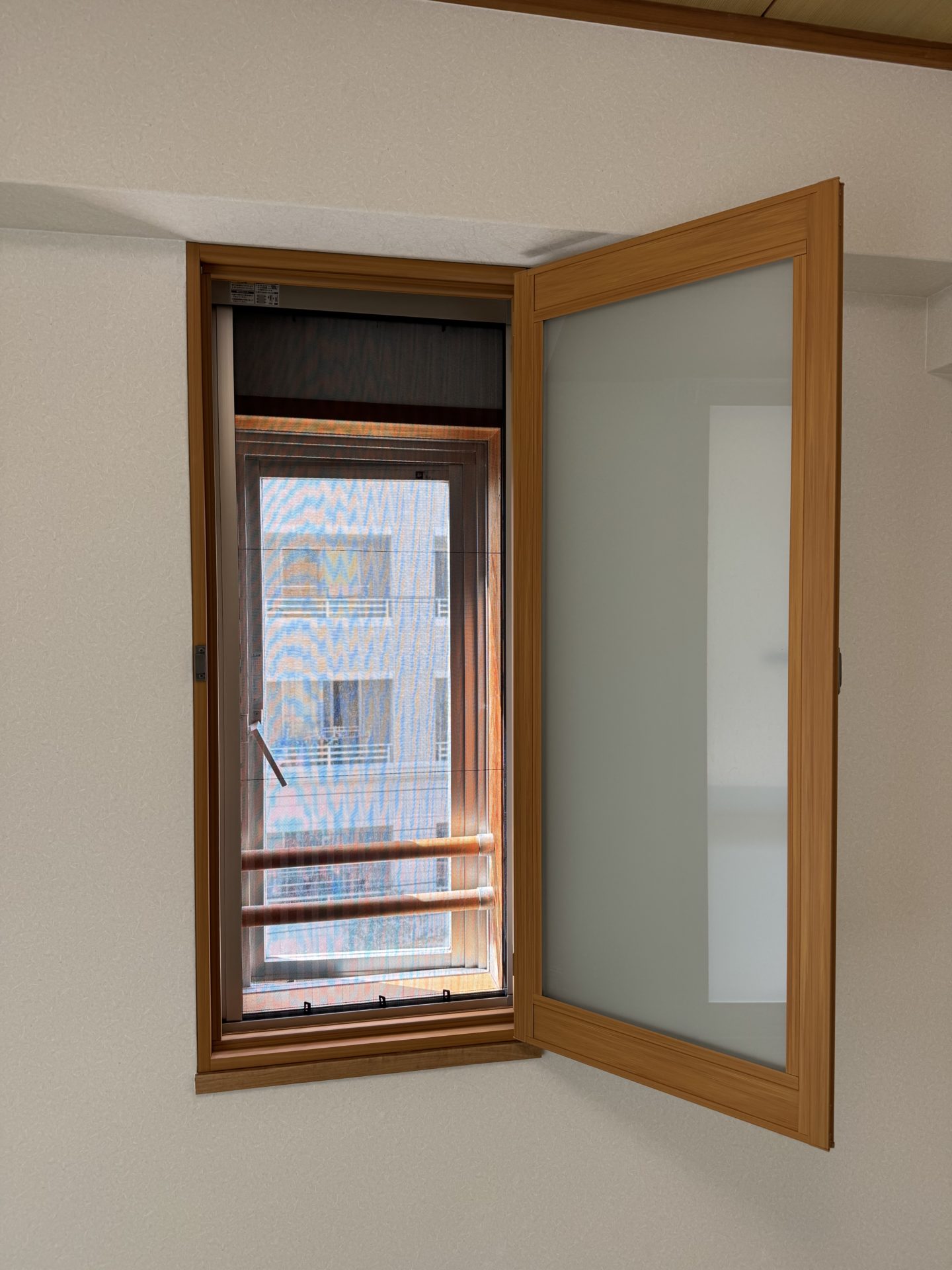 開き窓で手すりと干渉するため「施工できない」と他社で断られた箇所にも、職人とともに丁寧に現地調査を行い、無事にLIXILインプラスを施工。技術と経験が問われる場面でも、的確に対応しました。