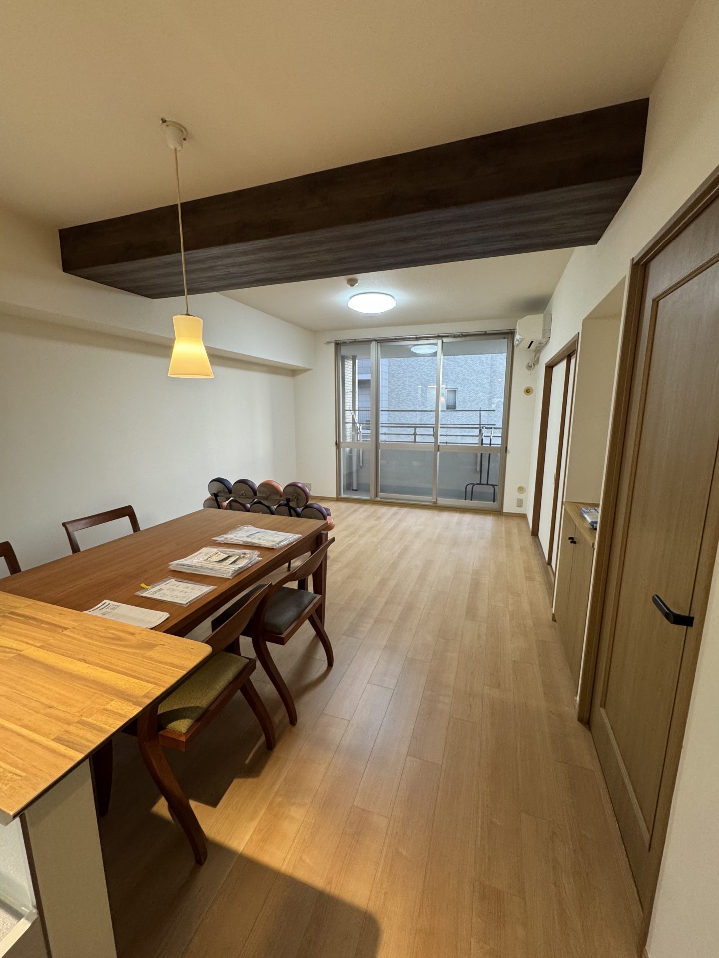 リビングダイニングも、フラットで広々とした空間へとリニューアル。既存の天井梁には木目調クロスを施し、キッチンの天井仕上げと統一感を持たせました。空間全体の色調を整えることで、家具との調和も生まれ、ナチュラルで心地良いLDKに仕上がっています。