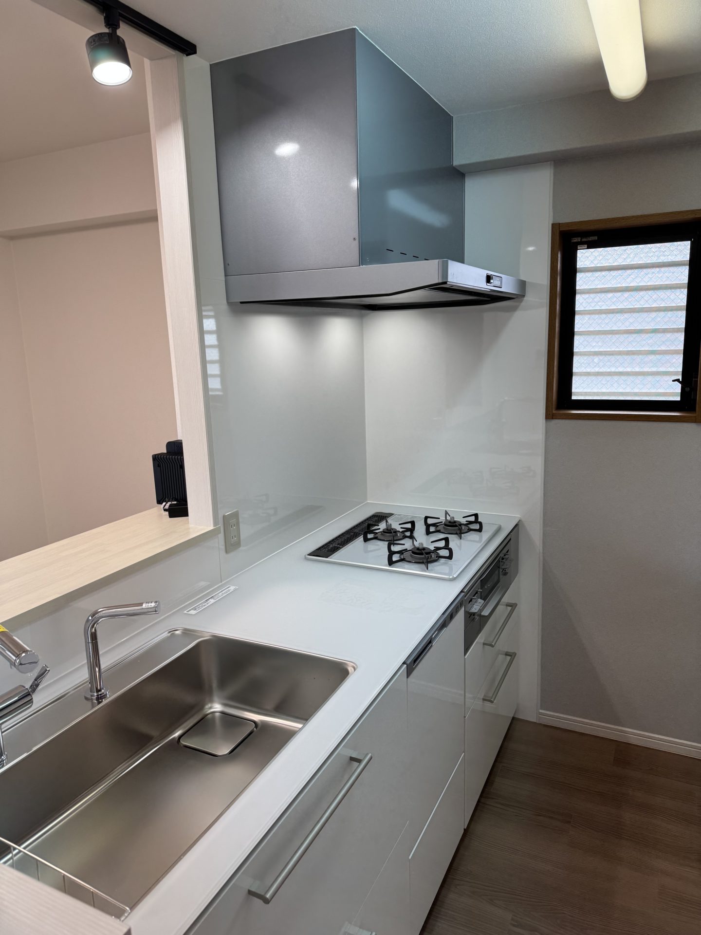 新たに設置した対面キッチンはTOTOの「ザ・クラッソ」を採用し、すっきりとした白の扉と高級感のあるクリスタルカウンターで、明るく開放的な空間に生まれ変わりました。ビフォー写真と見比べると、その印象の違いは一目瞭然です。