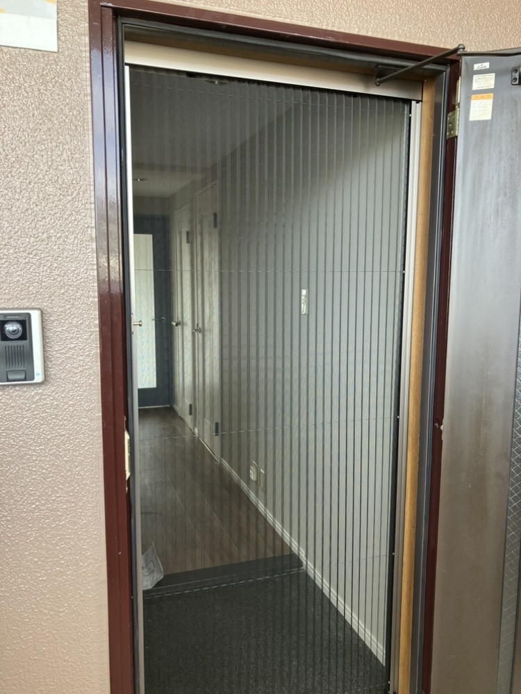 網戸を開けることで玄関からの風が通り抜け、室内にも心地よい風が流れます。お施主さまも「5月頃までは網戸で快適に過ごせました」と大満足。マンション特有の風通しの悪さも、網戸の設置によって軽減されました。