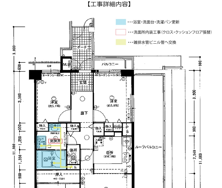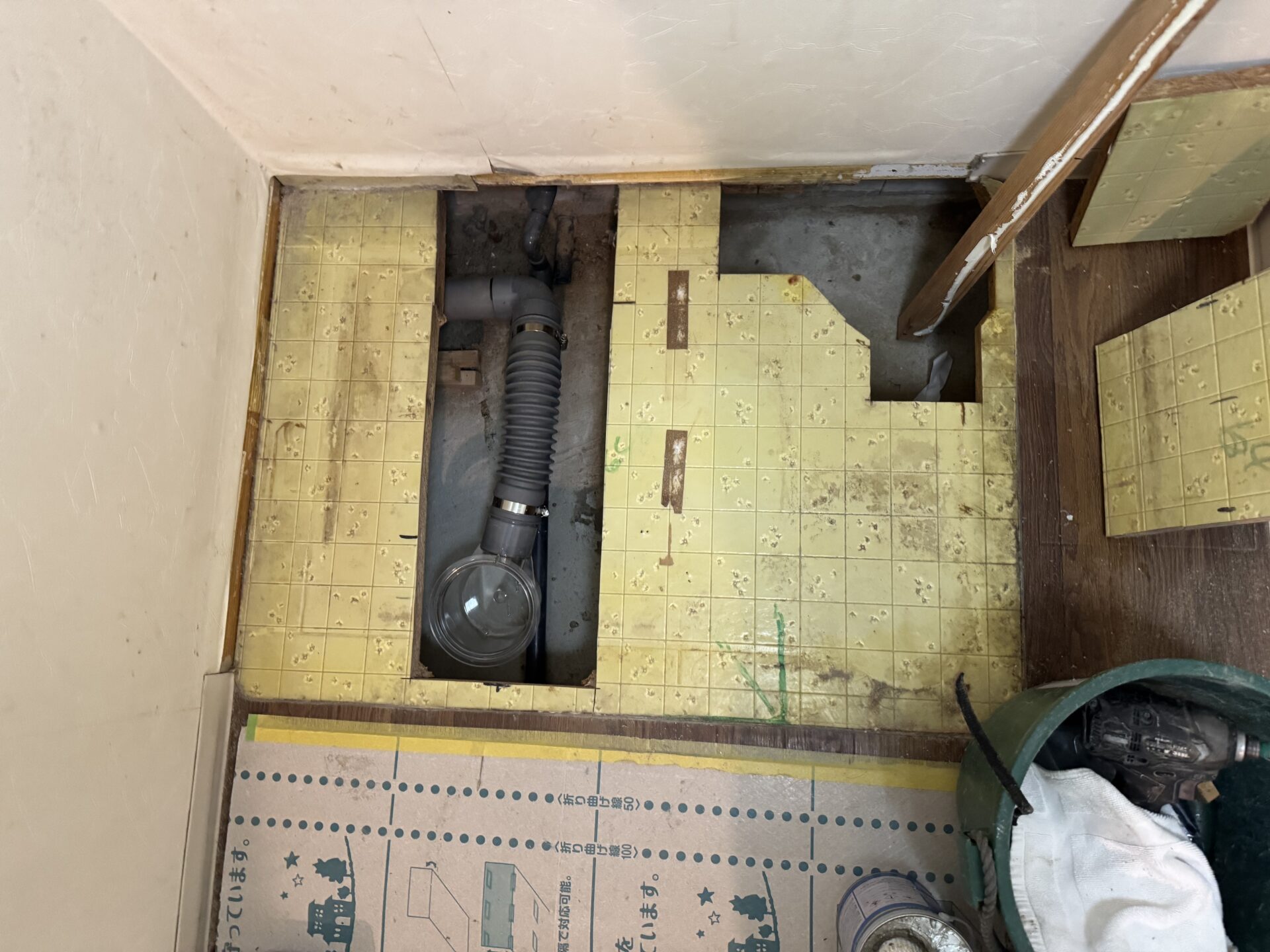 配管は、浴室、洗面室の配管をすべてビニール管に交換しました。