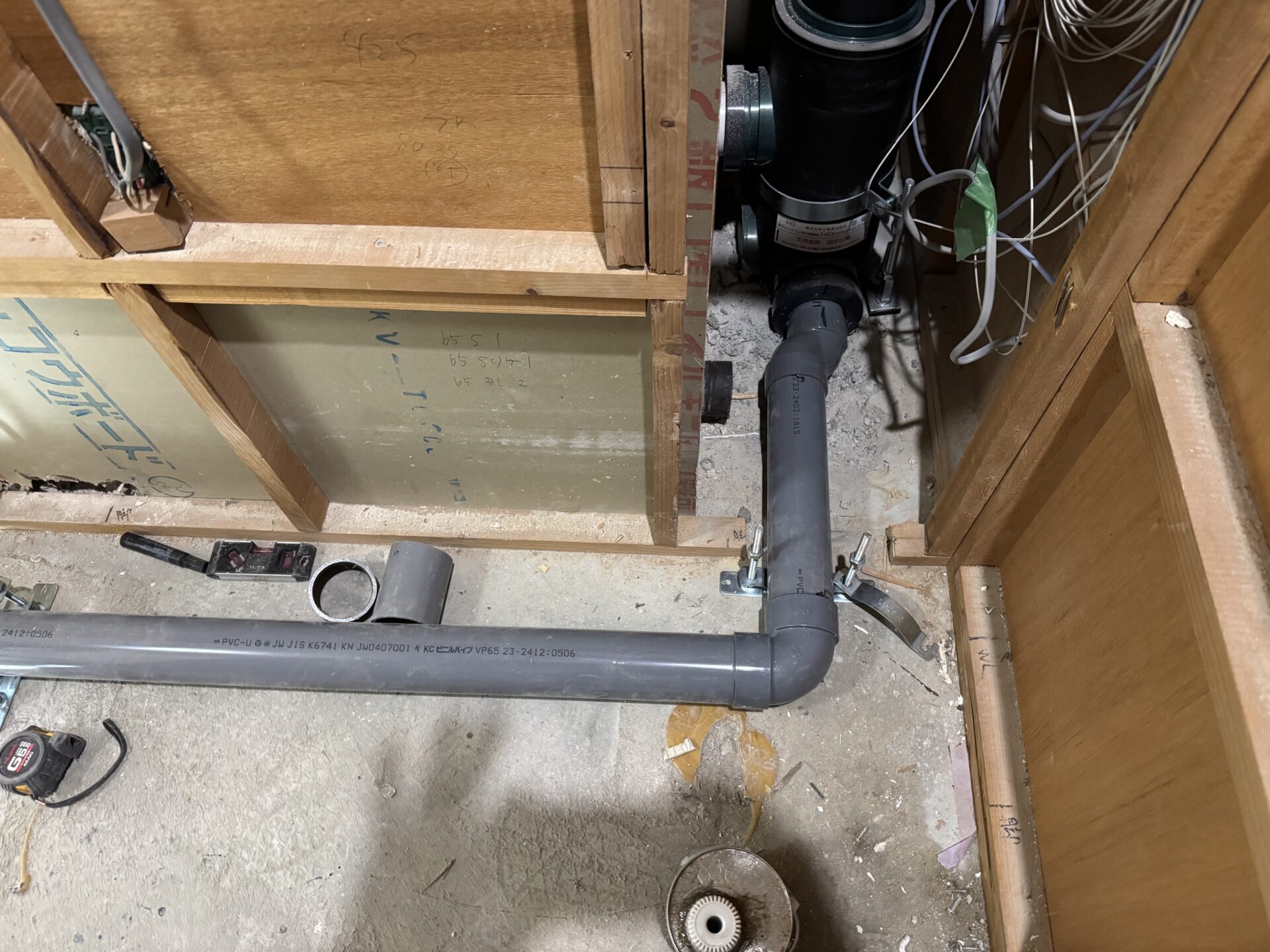 浴室から洗面室の配管です。
