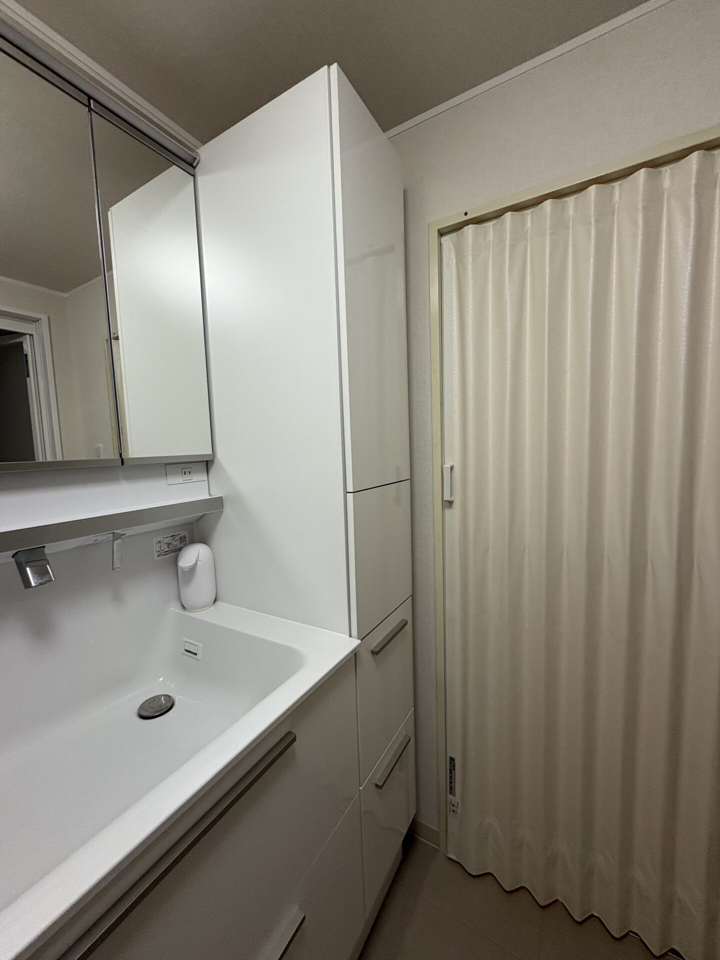 洗面室入口のアコーディオンもsimpleに光沢もあるけれど目立たさず一体感。