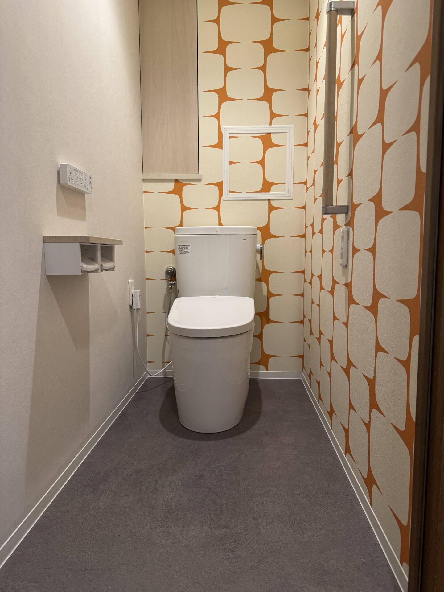 ピュアレストホワイト。紙巻器、手すりのカラーはライトウッド。