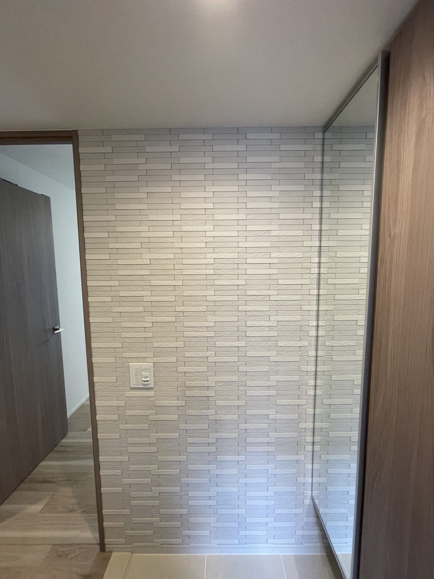 T様は新築マンションご購入され入居前にお部屋の内装を一部、リフォームされることに。玄関にはエコカラットを、洋室、トイレの壁にアクセントクロスを施工されました。エコカラットはデザイン性もすぐれお部屋のフォーカルポイントになるだけでなく、インテリアの雰囲気を格上げしてくれます。除湿、消臭などのエコカラットの機能性も嬉しいポイントです。帰宅して一番に目にする玄関が美しいとそれだけで気分があがりますね。新築マンションですがそのままお住まいになるのではなく、入居前のリフォームで、より自分らしくお好みのインテリアにされました。